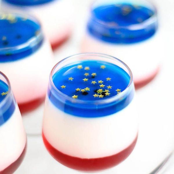 These creamy and fruity coconut panna cotta shooters will be the centerpiece of your Independence Day bash. The edible gold star garnish is an absolute must. (via Sprinkle Bakes)
