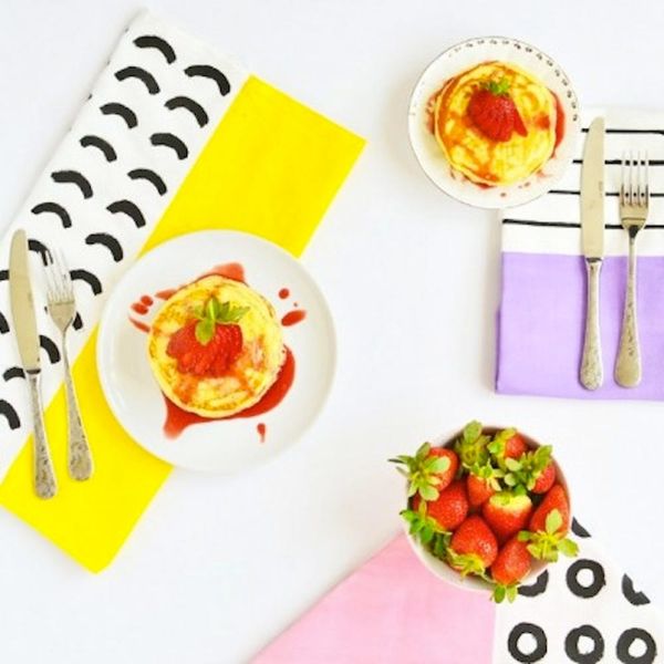 Jazz up a set of plain napkins from IKEA with nothing more than a couple tubes of fabric paint and your color-loving imagination. For an on-trend set of napkins, embrace those pastels with a color-dipped look and modern black and white pattern on the other half. (via Enthralling Gumption)