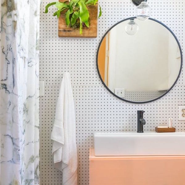 It's no secret that the saddest part of every apartment is the bathroom — you're at the mercy of someone else's strange taste in tile, the fixtures often don't match, and unlike the rest of the house, there's not much you can do about it. But the absolute worst conundrum of all is an utter lack of storage in this room. Rental bathrooms everywhere are solving this problem thanks to an easy-to-find wall covering you may remember from your woodshop days: the pegboard. Its paintable, porous surface can hide a multitude of sins, and it's an organizational godsend for small spaces. Check out how people are hacking this material in the most stylish of ways.