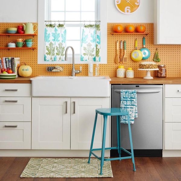 2. Kitchen Helper: Subway tile might be haute, but it sure won’t give you the storage that a pegboard backsplash will. Use movable, mini-shelves for spices, accents, and coffee mugs. (via HGTV)