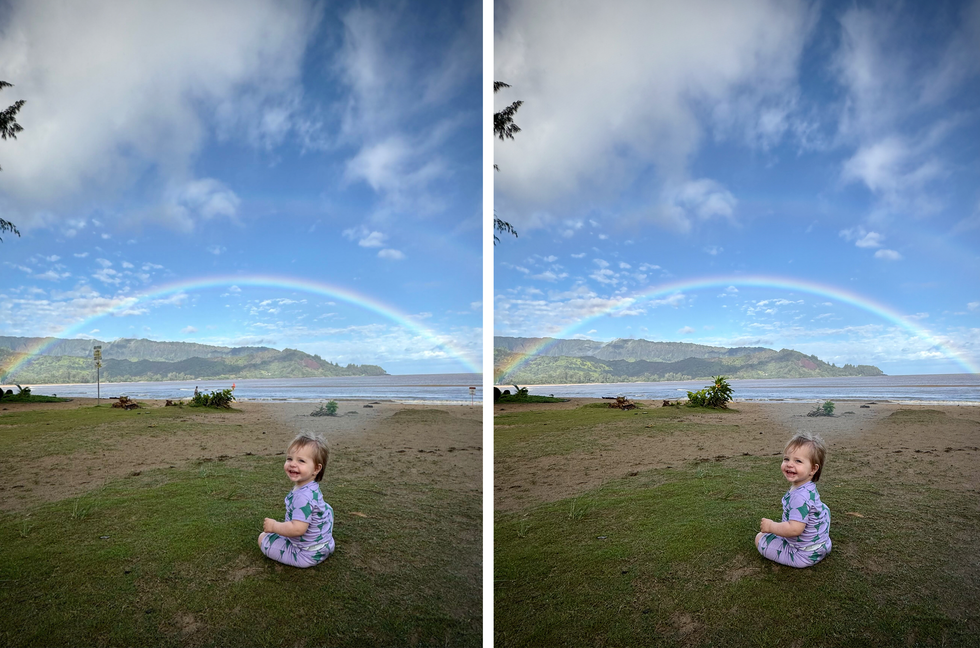 My go-to hack for creating the perfect photo? Adobe Lightroom. It’s literally in my back pocket to make sure I can capture all those fun, adorable moments with the kids while on the go. With the Lightroom app, I can live in the moment knowing I have everything I need to edit photos of my favorite memories quickly and easily later on. For this rainbow shot, I was able to remove the sign in the background so the focus is on Lumi and her rainbow.