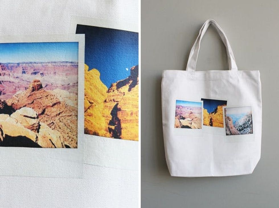 We did the same thing with a white tote and collection of photos from the Grand Canyon.