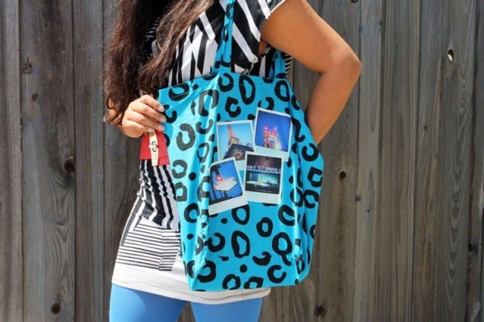 And last, a leopard print bag covered with pics from two iconic American cities: Graceland and Las Vegas.
