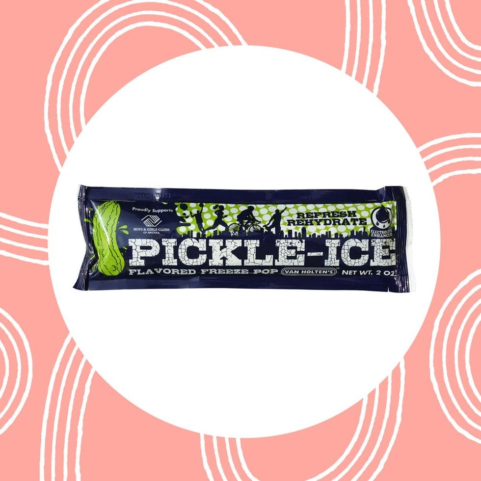 Pickle brine packaged in portable 2-ounce frozen pops lets you simultaneously cool down and rehydrate on a hot day. Yes, please.