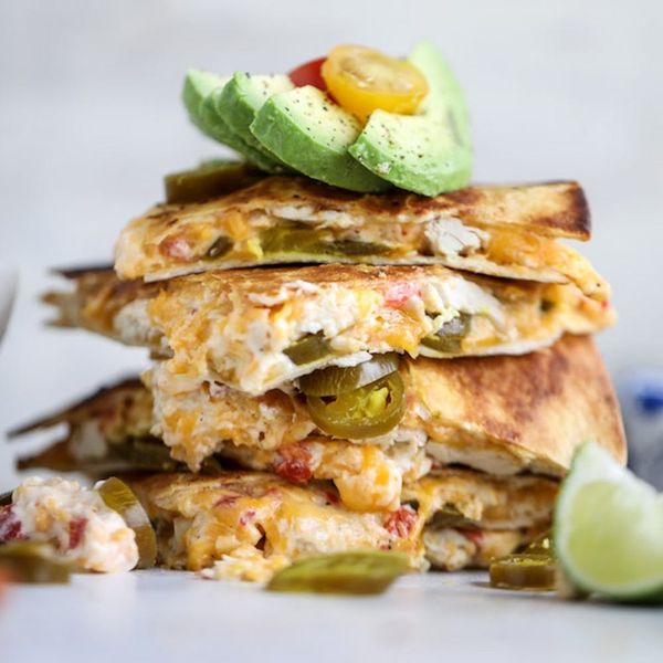 These quesadillas are cheesy, crispy, spicy, creamy, and most importantly… easy. They’re filled with rotisserie chicken, pickled jalapeños, and pimento cheese, and you’re going to crave them constantly. (via How Sweet It Is)