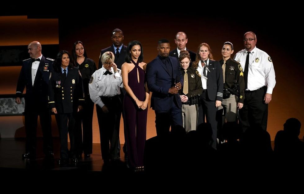Before the performance, Jamie Foxx delivered a heartfelt statement thanking the men and women who have put their lives on the line for others during the numerous catastrophic natural disasters and deadly violent attacks that have dominated the news cycle in 2017.