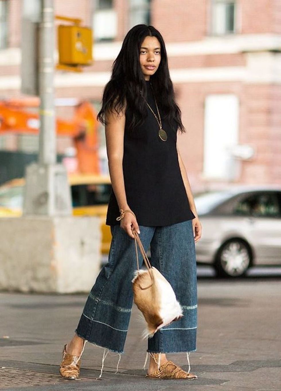 When you just need some room to breathe, opt for a wider leg opening. For extra ease, try them with a longer layer on top. (Photo via Garance Dore)