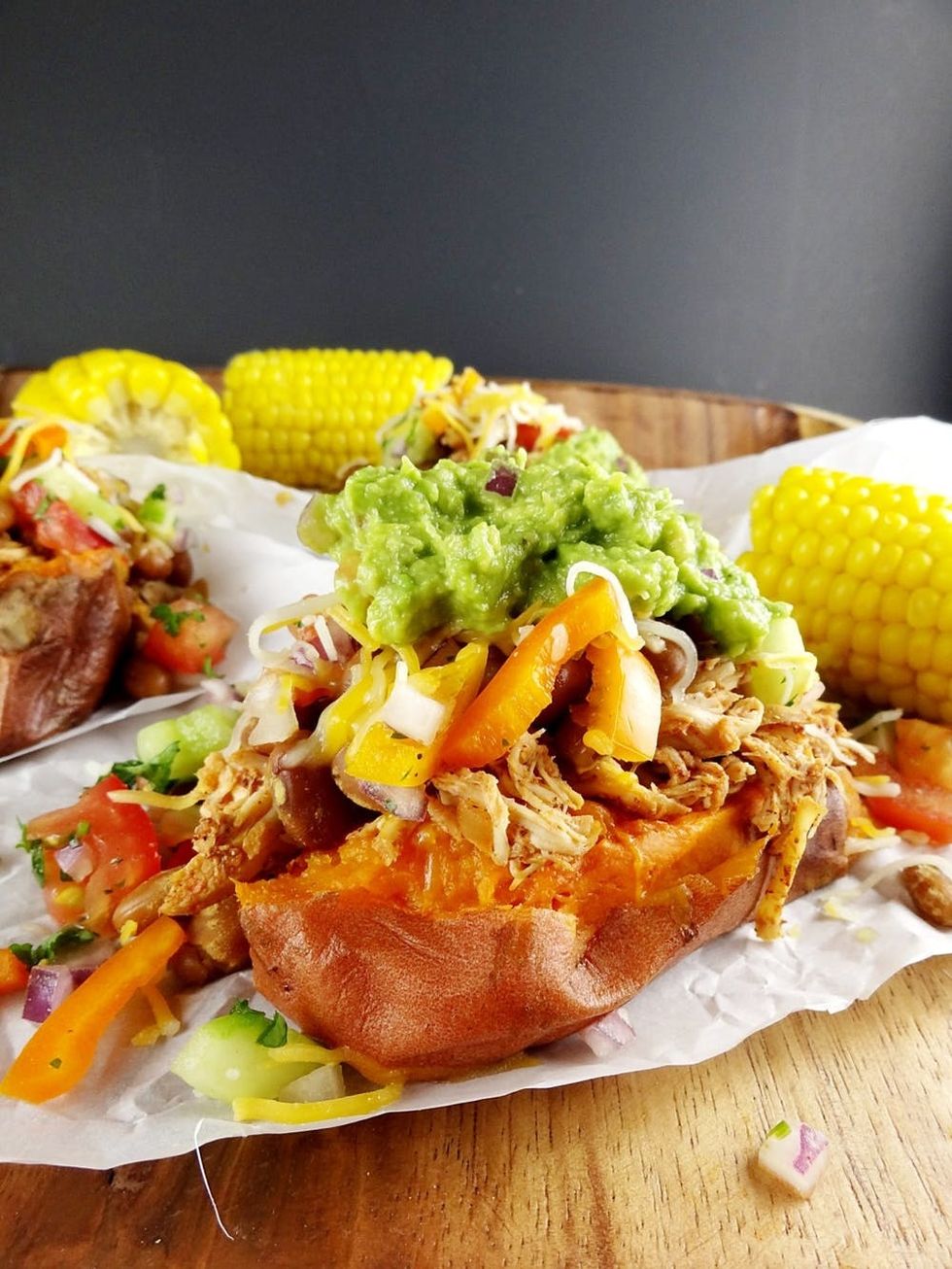 3. Chicken Taco Stuffed Sweet Potatoes: Tender baked sweet potatoes are swapped in for tortillas in this nutritious recipe. (via The Cheerful Kitchen)