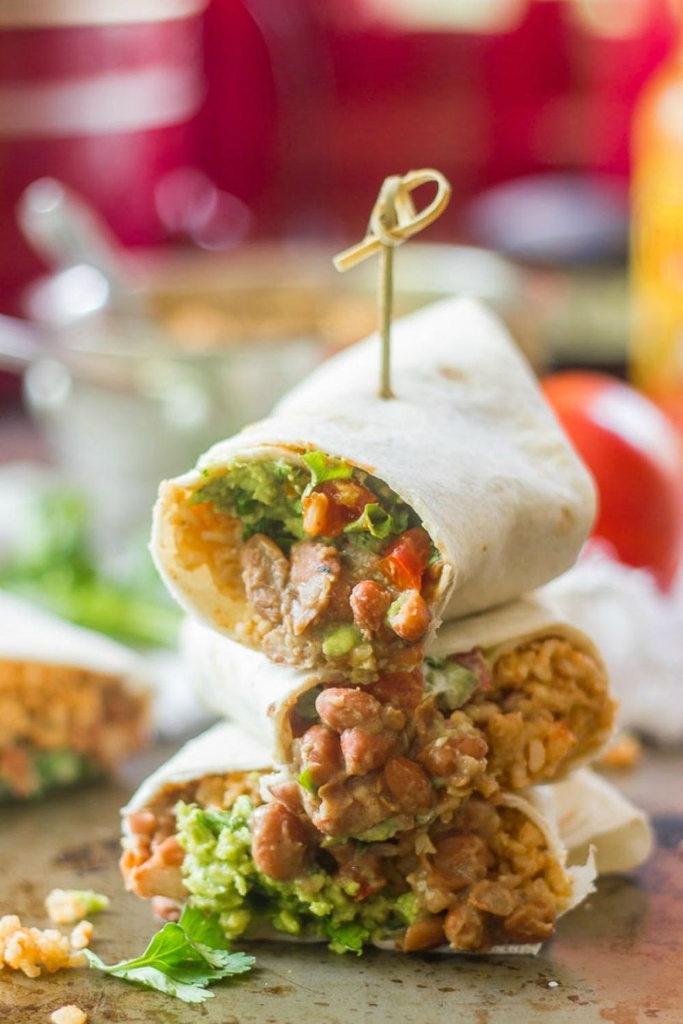 4. Vegan Seven Layer Burritos: Homemade refried beans add a creamy texture and lots of protein to these burritos. Wrap them up along with rice, guac, and plenty of toppings. (via Connoisseurus Veg)