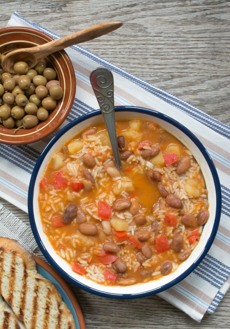 6. Mediterranean Pinto Bean and Rice Soup: This economical meal is made with beans and brown rice, giving you a hearty helping of protein and whole grains in each bowl. Its flavor comes from onion, pepper, garlic, and tomatoes, a simple but tasty combination. (via Tasty Mediterraneo)