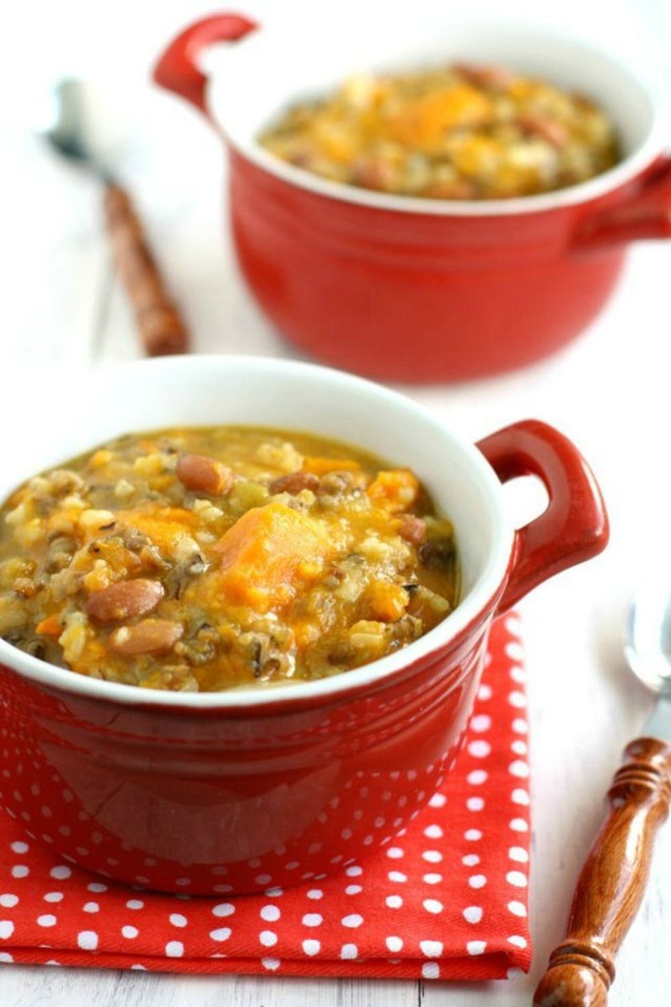13. Slow Cooker Sweet Potato and Wild Rice Soup: Sweet potatoes break down and help thicken the broth of this cozy veggie and rice soup. Pintos add protein the mix, so each bowl is a complete meal. (via The Pretty Bee)