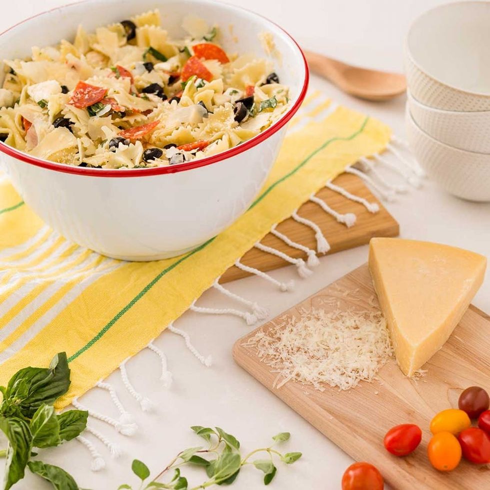 We just want to put something out there… if loving carbs is wrong, we don’t wanna be right. (Eat all the carbs!) Pizza and pasta are two of our favorites, so we decided to combine them for one epic recipe mashup. Introducing our pizza pasta salad! It’s the perfect summery dish, it’s easy to make, and it’s a guaranteed crowd pleaser for your next picnic or backyard BBQ. You can thank us later. ;)