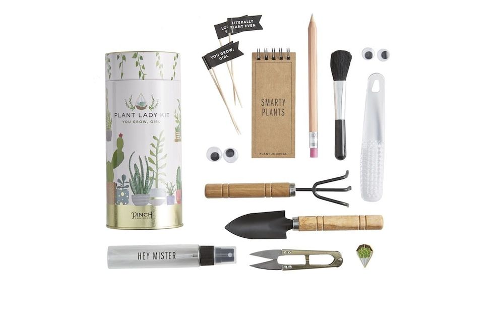 Pottery Barn Plant Lady Kit ($24): Made for the urban grower, the appropriately named Plant Lady Kit includes indoor gardening essentials like a mini rake, leaf brush, and mister bottle. It also has some motivational plant markers and googly eyes to really bring her foliage flare up a notch.