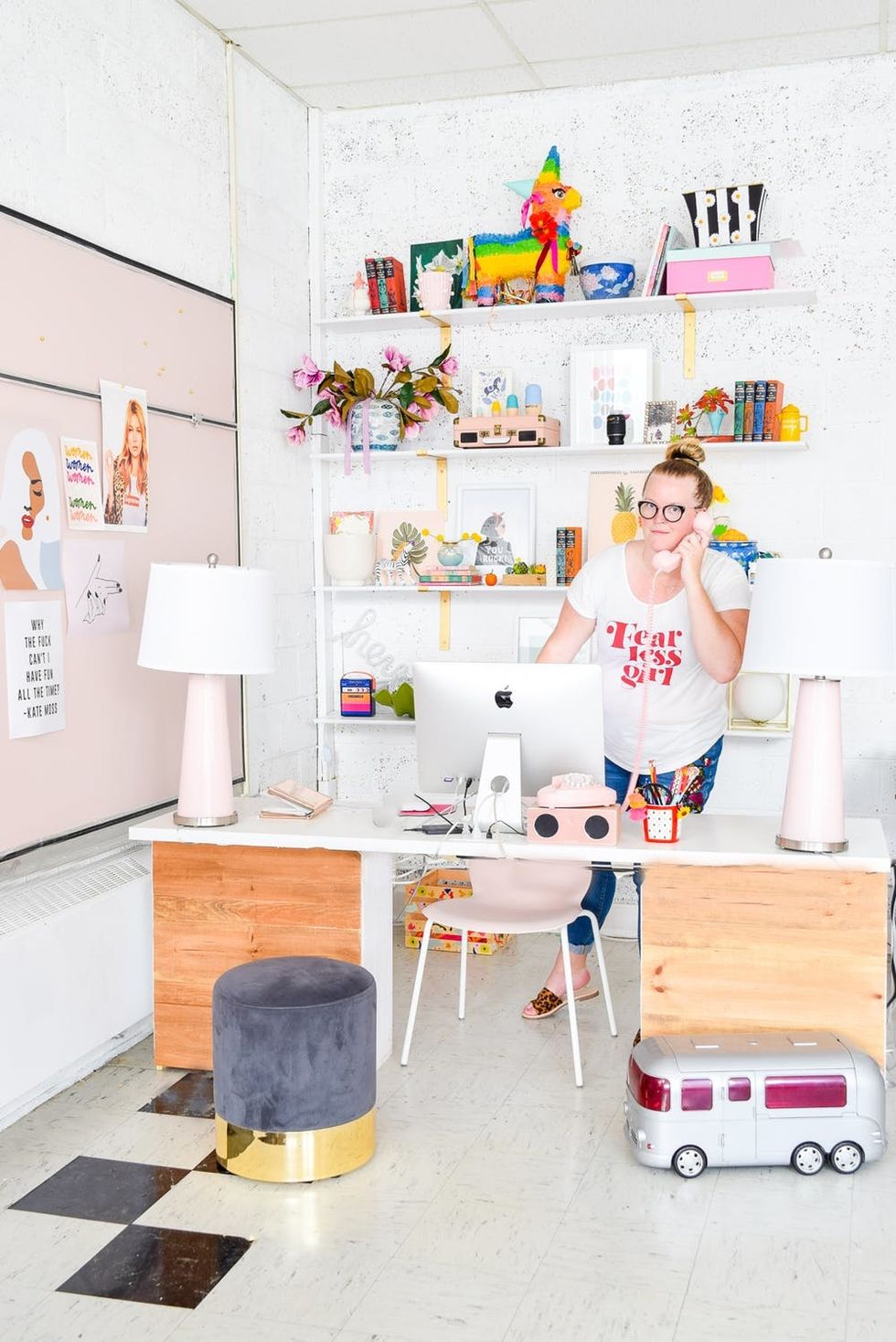 Maybe it’s the nostalgic remnants of those annual “back to school” vibes from childhood, but nothing gets us in the fall spirit like a beautiful and organized workspace. And when that workspace belongs to an inspiring female entrepreneur (and Brit + Co contributor!) like Ariel Garneau, you *know* we’re all over it. Garneau needed to upgrade the desk area for her (aptly named) photography and events company, Blush & Brass Studios. But as the queen of colorful and whimsical decorating, she knew there could be nothing mundane about where she does her creative work. Enter: Probably the coolest office ever.