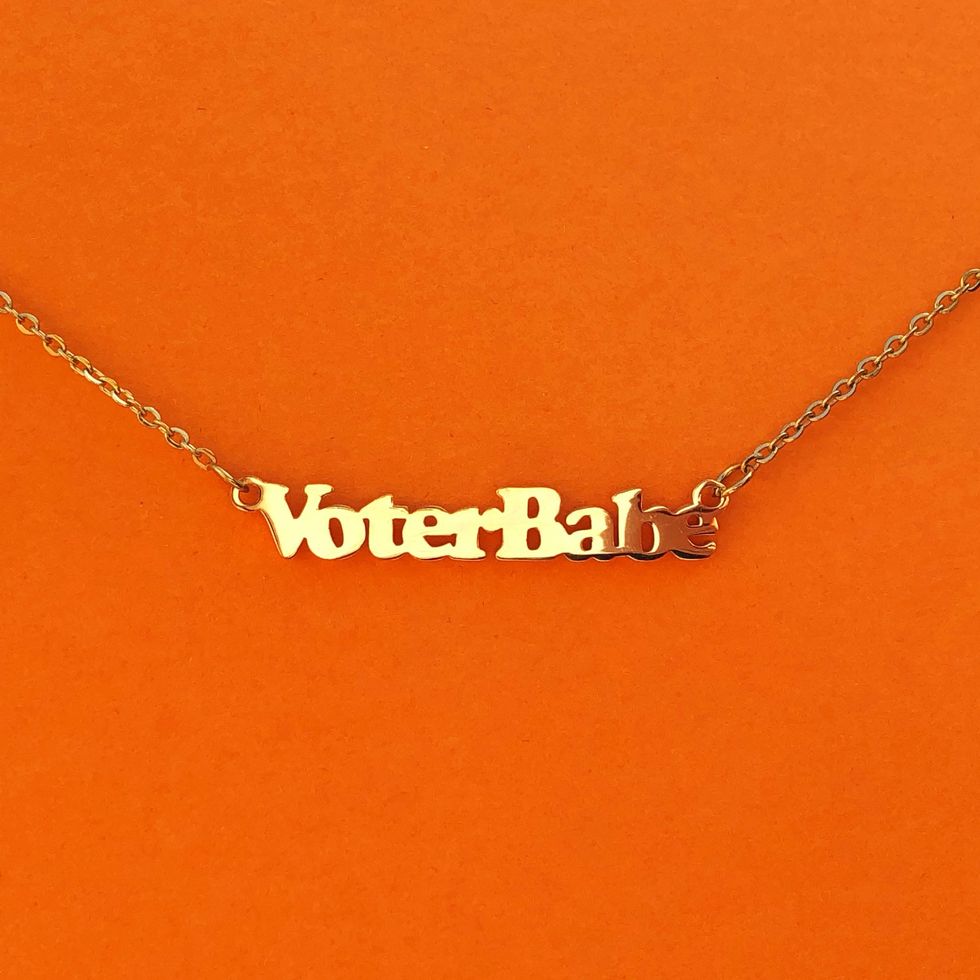 For those still reeling from the 2020 election, there's this "Voter Babe" 18k Gold-Plated Necklace ($35) from Brownie Points for You, founded by Rinny Perkins.