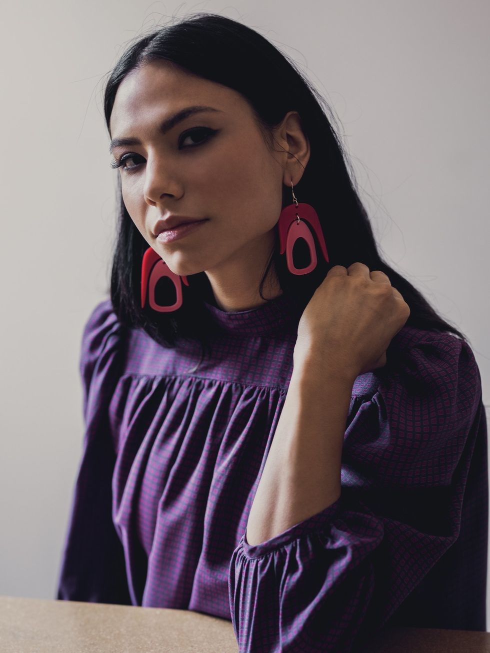 You might remember the breathtaking designs of EMME founder Korina Emmerich from Project Runway. Her colorful work reflects her Indigenous heritage stemming from The Coast Salish Territory, Puyallup tribe. She is based in Brooklyn, NY.
