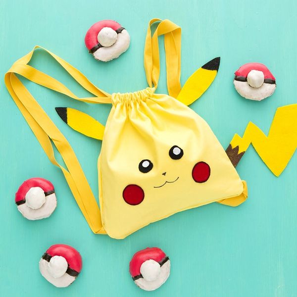 Pokémon Go is taking over all our phones and I’m not complaining. I have the happiest memories playing Pokémon on my Gameboy Color. I may not go as far as to get a Pokémon engagement ring, but I’m still so into this mobile game. One reason Pokémon Go is my new favorite thing ever is that it forces me to get off my couch and outside to catch all the Pokémon! I can shamelessly say that I walked around so much, I started to pack snacks for my daily Pokémon journeys. So I decided to DIY the perfect Pikachu backpack to fill it up with Pokéball donuts to prepare for my next Pokémon-catching adventure. This backpack and donuts are as easy as catching a Magikarp but are as adorable as an Evee. Let’s get started!