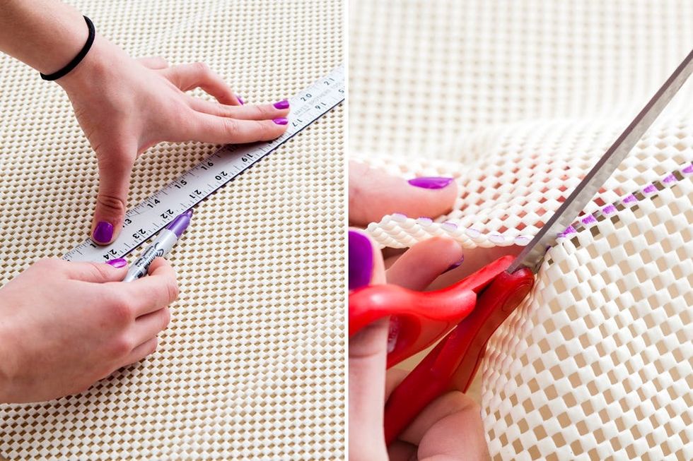 1. Cut rug pad to desired size. We cut ours to 3 feet x 3 feet.