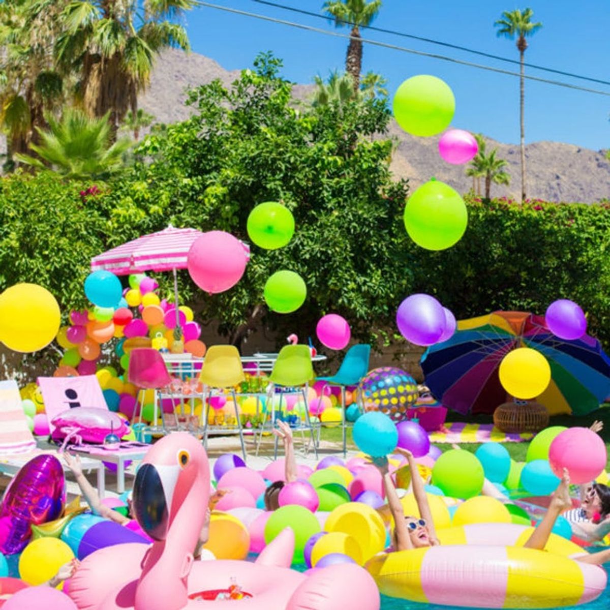 10. Pool Party DIY Balloon Wall: Don’t forget the photo booth! For a next-level backdrop, craft this balloon wall for major wow factor. Pro tip: Use a helium machine for quicker assembly. (via Oh Happy Day)