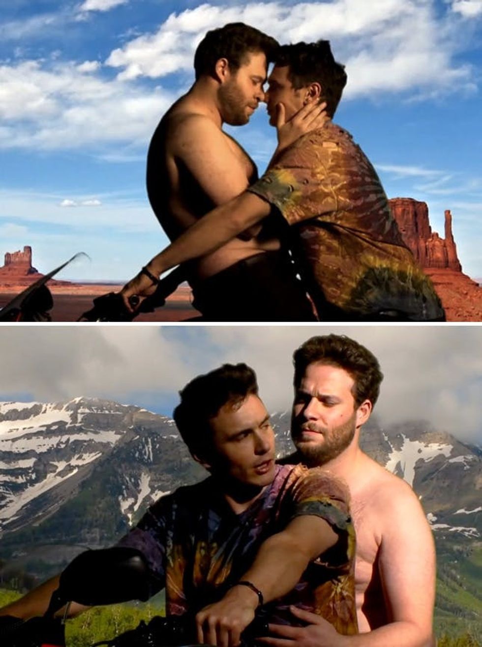 7. James Franco and Seth Rogen, “Bound 2” Edition: And from Kim and Kanye to their would-be doppelgängers, Franco and Rogen. You would need a fake motorcycle to pull this costume off for sure.