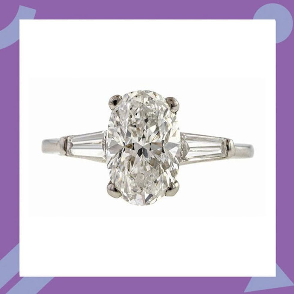 “Oval cut diamonds are very flattering to many finger shapes. The graceful elongate shape tends to visually lengthen the finger. They have a similar brilliance and sparkle to the more prevalent round brilliant cut but are a more unexpected shape. Though they are a less common diamond shape, they still lend themselves well to a variety of classic mounting styles to create timeless, elegant engagement rings.” Brit + Co Pick: Estate Oval Diamond Engagement Ring ($20,500).