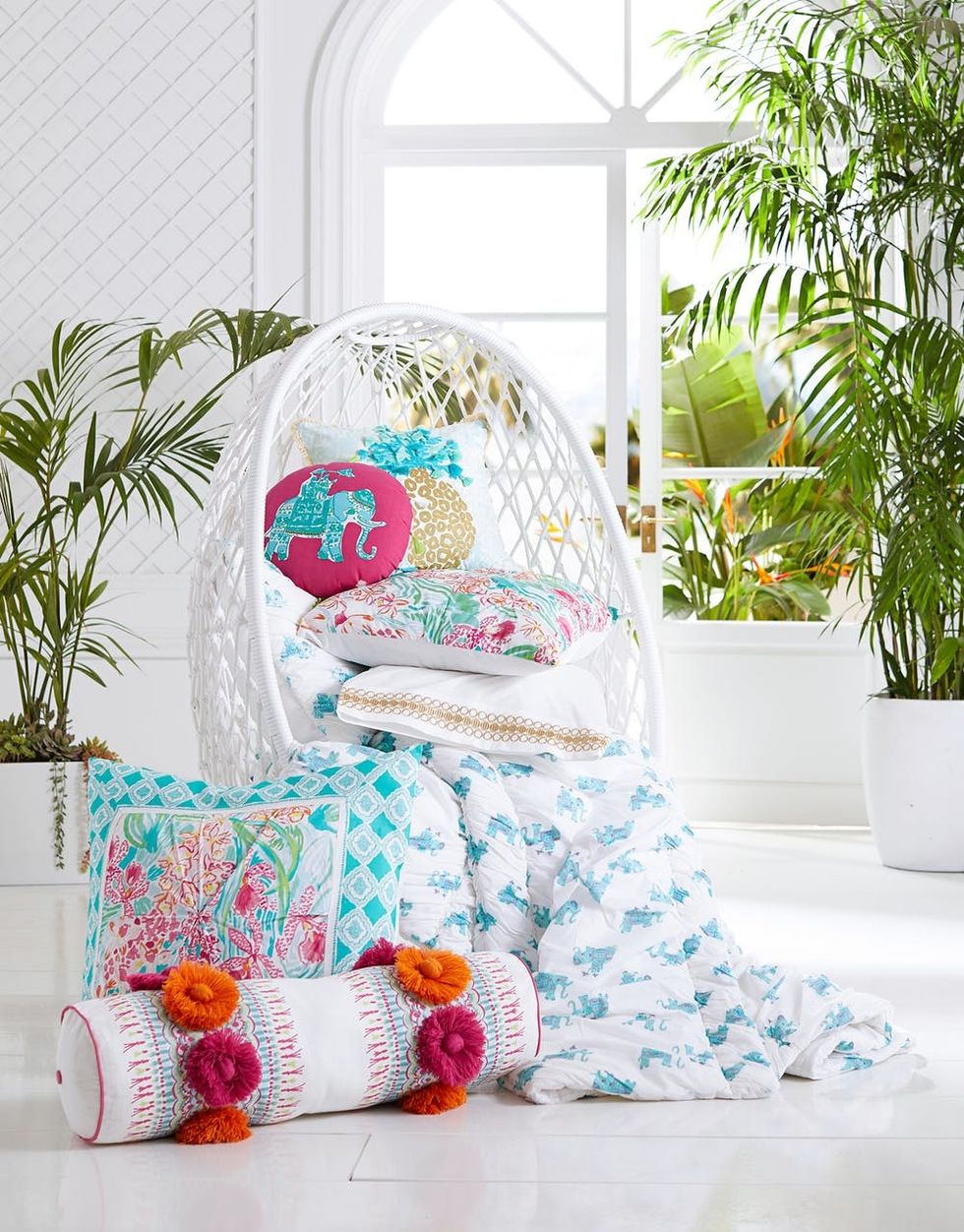 Take it from Mira Fain, Executive Vice President of Product Design & Development at Lilly Pulitzer: "The Lilly design aesthetic can always be summed up as happy and welcoming. Vivid colors mixed with touches of warm gold and fresh white provide a resort-like look and feel. We love celebrating every day with something special such as beautiful pink orchids or a glass bowl of fresh oranges, [and] surrounding yourself with whatever makes you smile,” she says.