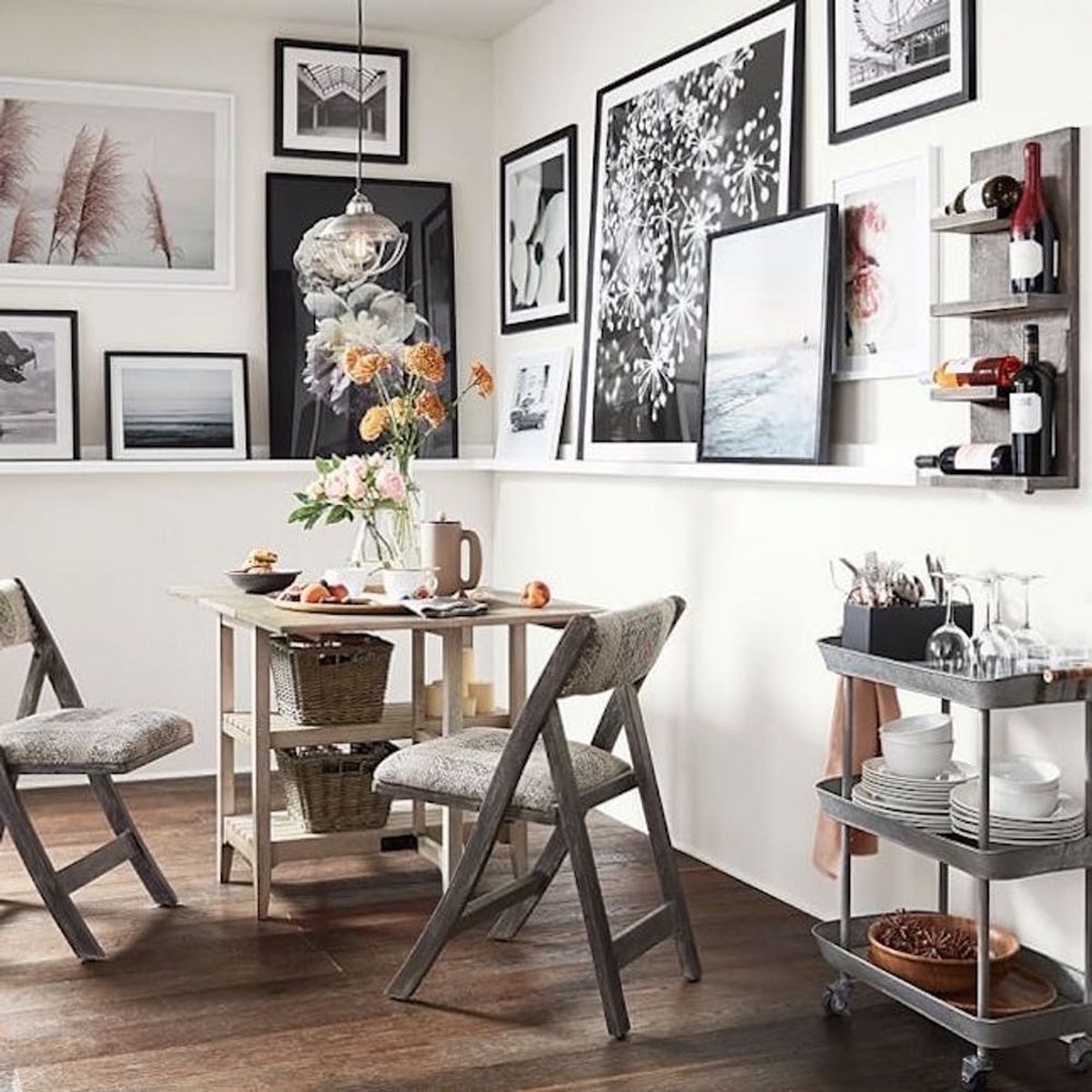 If you don’t have enough kitchen cabinet space, use the industrial-inspired Rainier Galvanized Storage Cart ($99) to stash plates, cups and serving dishes. The wheels make it easy to move, in case you need to do some quick rearranging before your next dinner party. Don’t need it in the kitchen? Use it as a nightstand or roll it into the bathroom to hold toiletries and extra towels. Speaking of dinner parties — the super slim Alice Gateleg Storage Table ($399) above can be used for dining or for working. Lift up the eaves to create a dining spot for two and tuck baskets into the built-in shelves to store dishware and extra kitchen utensils.
