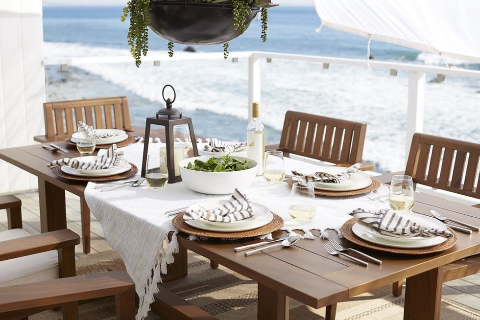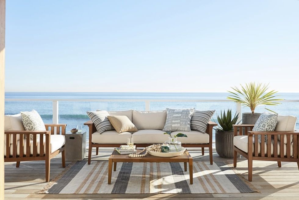 The Jamie Durie for Pottery Barn Collection is so versatile because it’s neither patio furniture nor indoor furniture. Instead, these pieces are designed to complement either environment and blur the lines between the two. Simple yet cozy, the mid-century-style offerings include chairs, sofas, tables, and more.