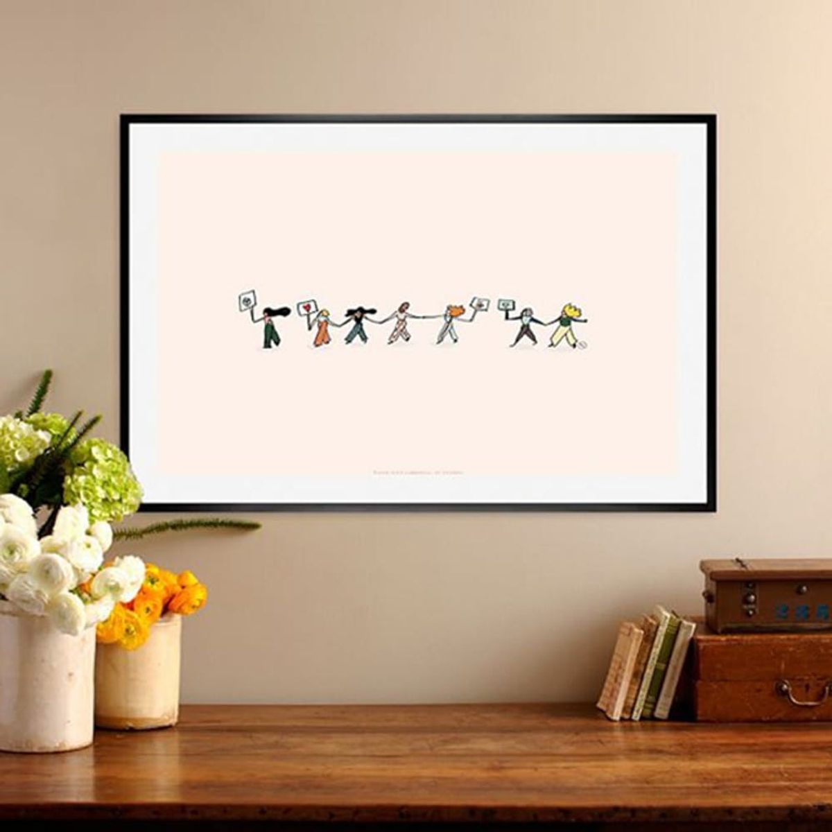 Happy International Women’s Day, everyone! Today we’re celebrating all of the leading ladies in our lives, supporting all of our favorite women makers, and making our dollar work to support necessary non-profits. And in the spirit of International Women’s Day, Pottery Barn has partnered with Women Who Draw to release four limited-edition prints sold exclusively online. Women Who Draw works to increase visibility and empower female illustrators of color, LBTQ+, and other minority groups. And as part of the campaign, 20 percent of Pottery Barn’s print proceeds will directly benefit HERproject, a non-profit that empowers low-income women working in global supply chains by providing them with training programs on health, financial inclusion, and gender equality. Scroll on to peep the exclusive prints, and hear from the artists themselves.