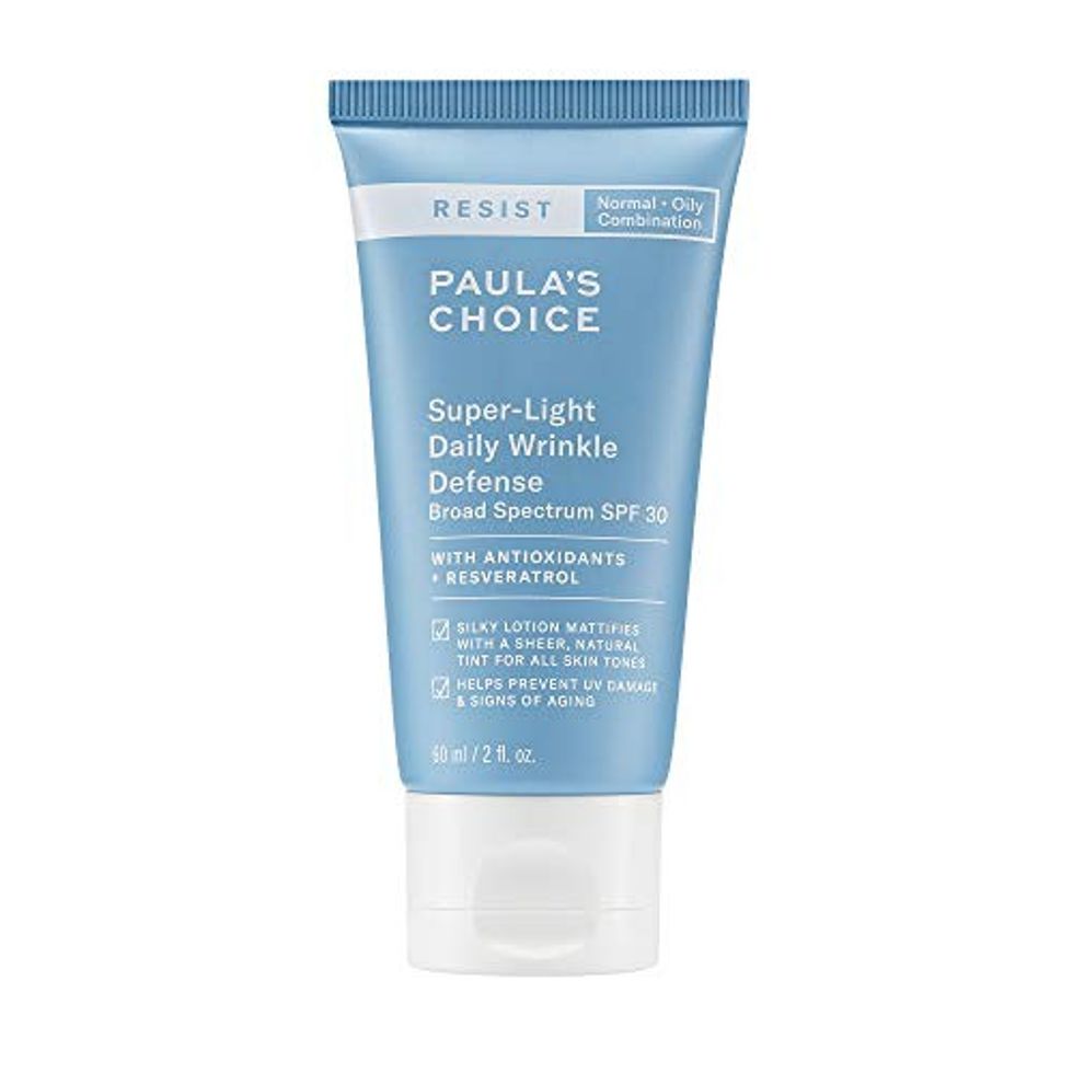 A popular product from Paula's Choice is this RESIST Super-Light Daily Wrinkle Defense. This tinted face moisturizer works by providing broad-spectrum sun protection. At the same time, its matte-tinted formulation helps to even out the skin tone and reduces the appearance of fine lines.