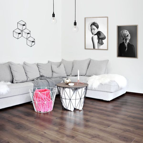 12. Ferm Living Sofa Tables: This inspo is every geometric lover’s dream. Adding a wooden top transforms a Ferm Living basket into a small coffee table with plenty of storage. (via Only Deco Love)