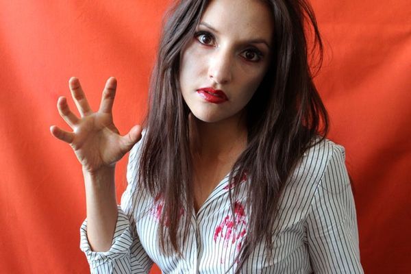 For our finishing touch, we used nail polish on Brit’s shirt to simulate blood. Very scary!