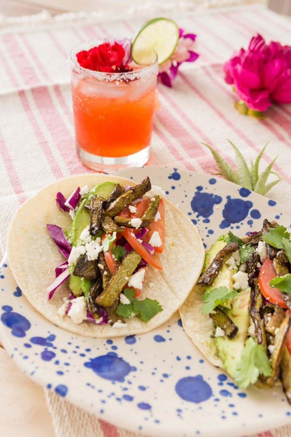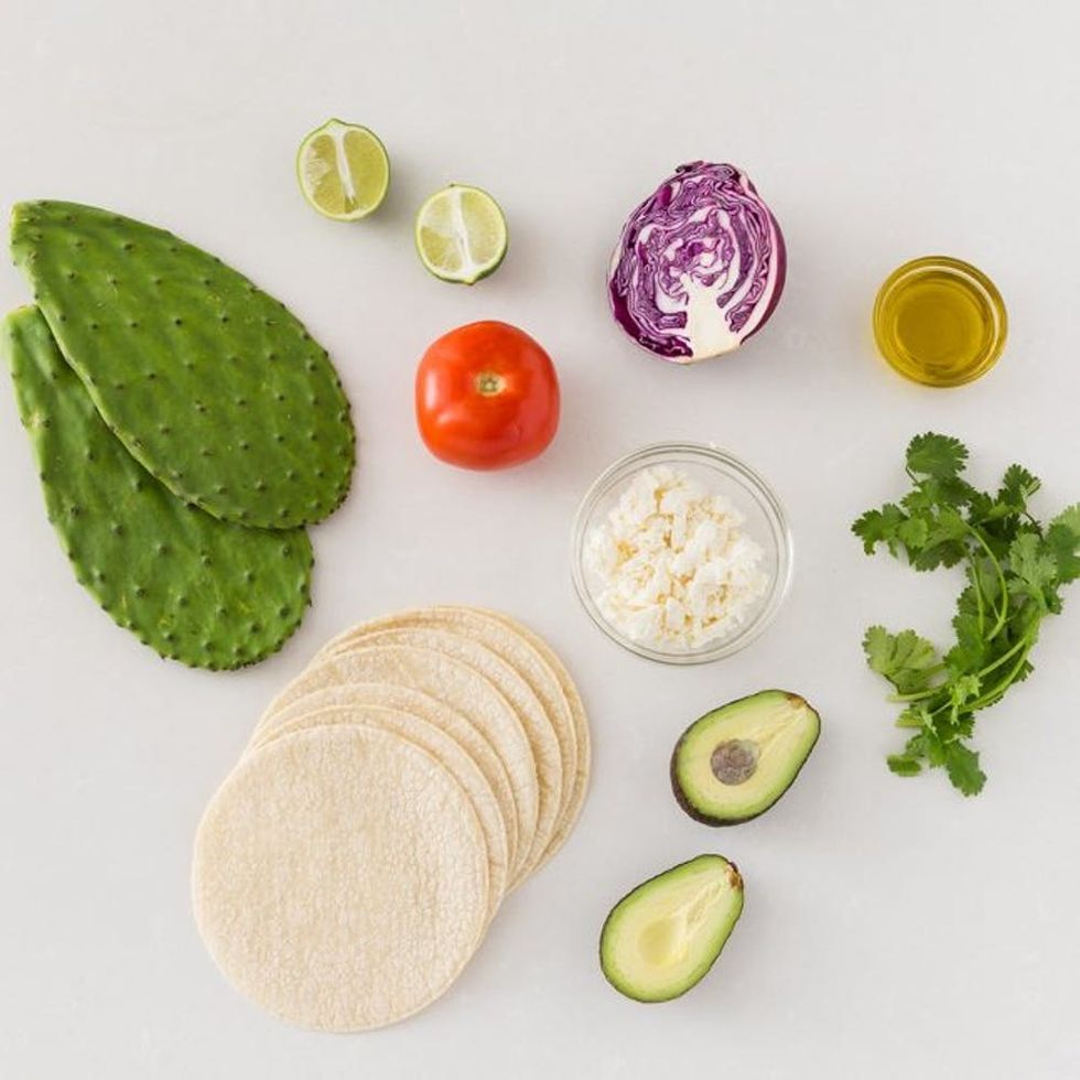 Cacti are so hot right now, and we are 100 percent on board! We’ve brought you everything from cacti apartment decor with pillows and chairs to cactus-inspired fashion. Today we bring you cactus in edible form, a traditional Mexican dish — nopales tacos. I’ve tried them before in restaurants but had never prepared cactus myself. Surprisingly to me, it was easy and delicious! I paired these babies with prickly pear margaritas, for a cacti-filled meal.