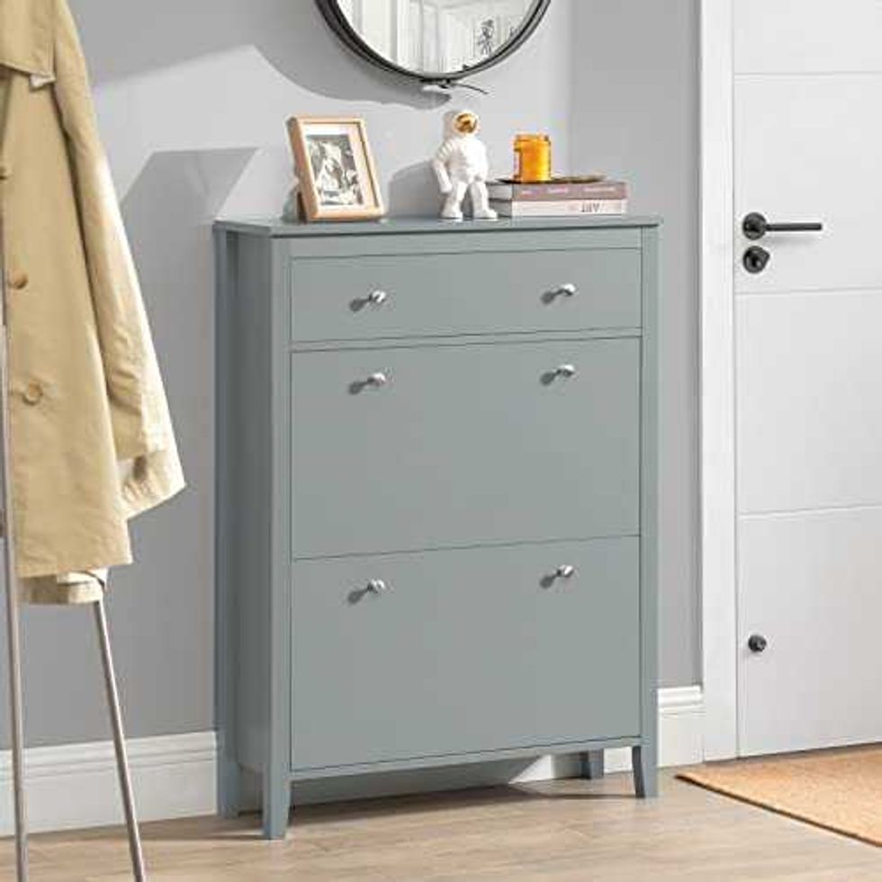 Rental spaces aren't often blessed with huge closets for your shoes. But this stylish cabinet is shallow enough to fit into most spaces without taking up too much room. The two flip drawers have ample space for sneakers, heels or slippers. It comes in a traditional wood brown, a clean white and a modern grey.