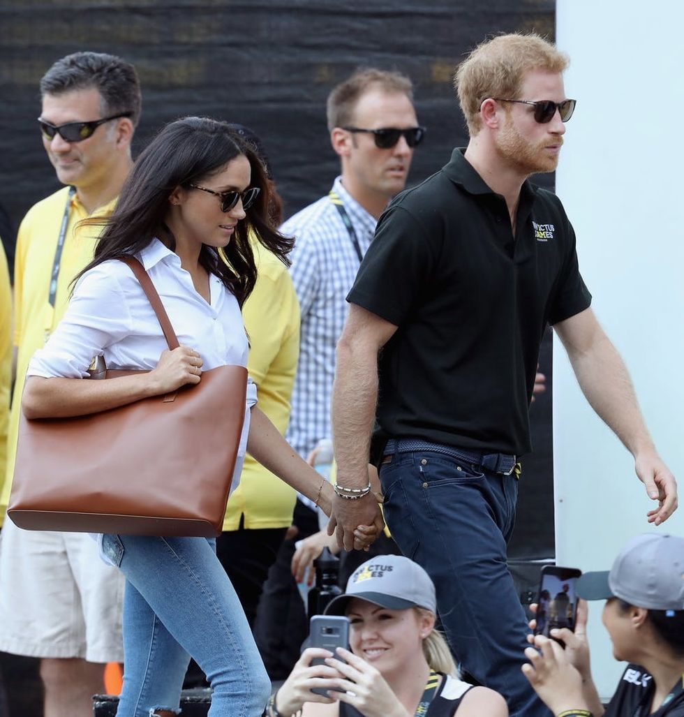 Both were casually dressed in jeans, with Harry in an Invictus Games polo shirt and Markle in a loose white blouse (and slaying a stylish slit in the knee of her denim). They also wore sunglasses — apt for the bright day — but the shades couldn’t hide the way they were feeling about each other.