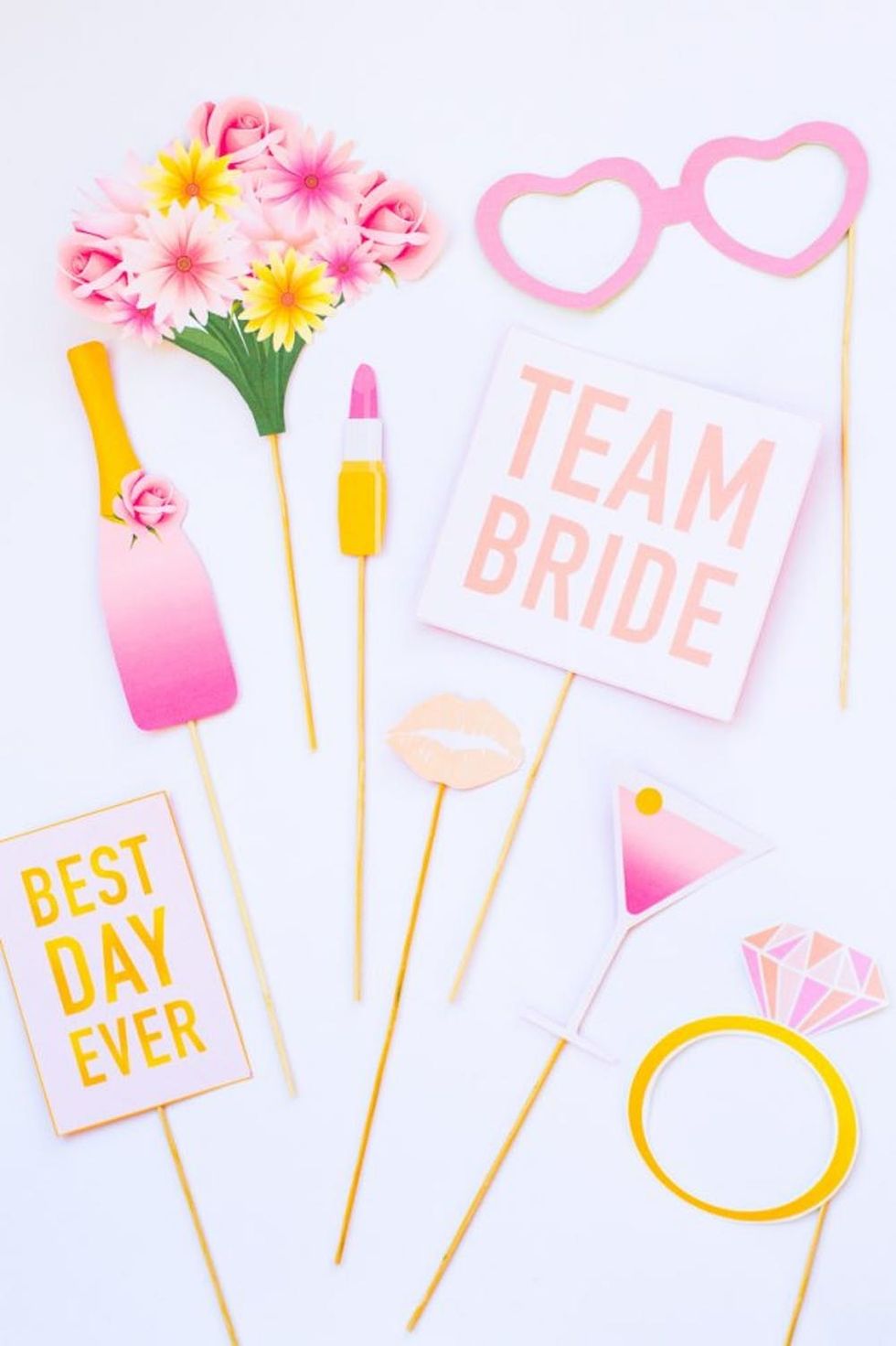 If you like photo booths as much as we do, then you know what it’s like to show up at a wedding or bachelorette party and excitedly spot a photo booth in the corner, only to feel the disappointment set in when you glance at the not-so-photogenic props. Think giant glasses, crazy-colored wigs, and *all* the hipster mustaches. We’ve all seen it before, and TBH, we don’t need to ever see any of it again. Wouldn’t it be way more fun to print out some modern (and super pretty) props for your booth? Well, now you can, thanks to our bachelorette party photo booth props!