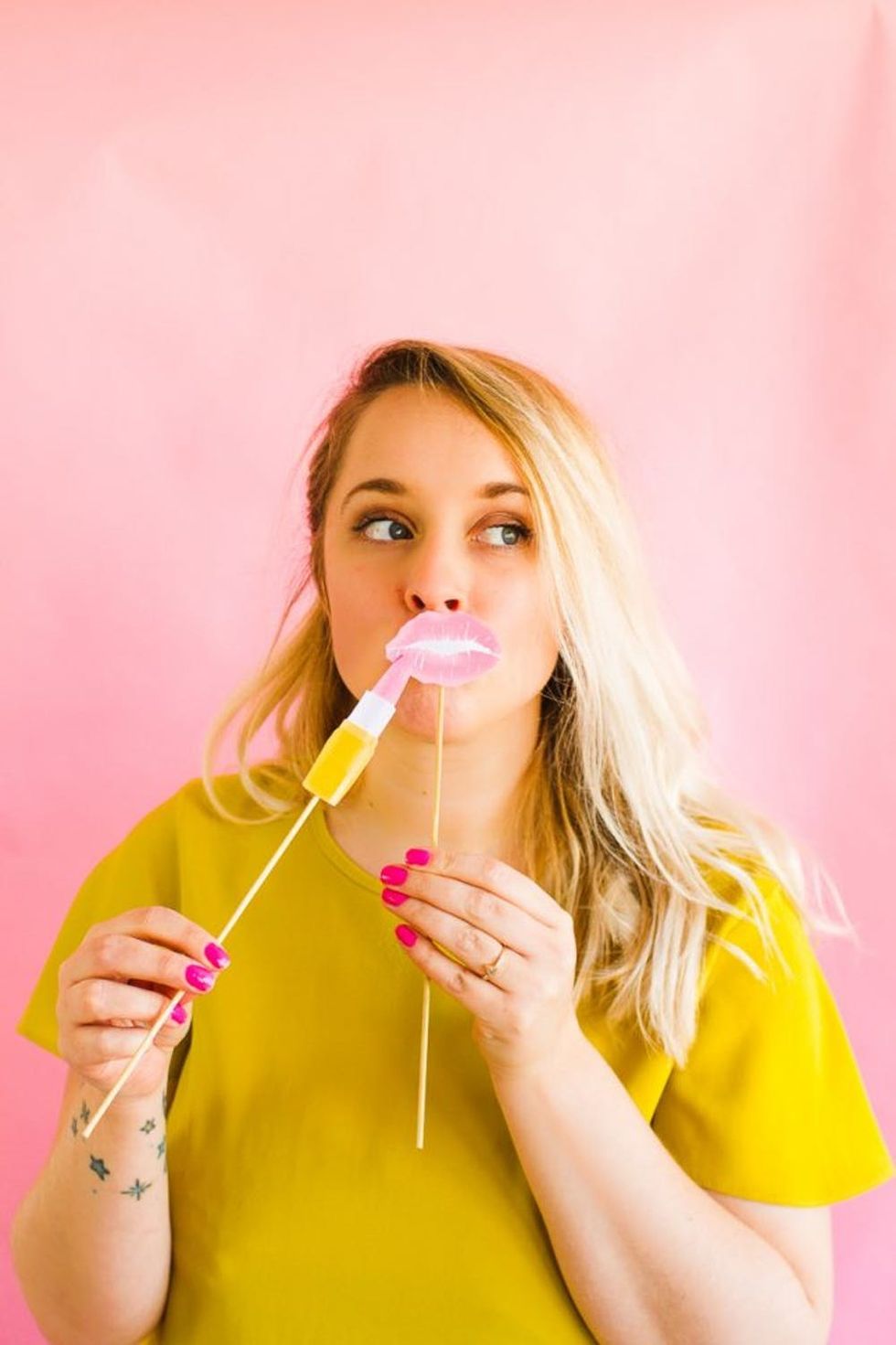 Your gal pals will love the fun and seemingly endless choices and will have no trouble forgetting the boring photo booth props. We had a great time just shooting this DIY, and we can only imagine what it would be like with a whole crew of girls in front of an epic backdrop! Major squad goals right?! Grab the props for under $7 here.