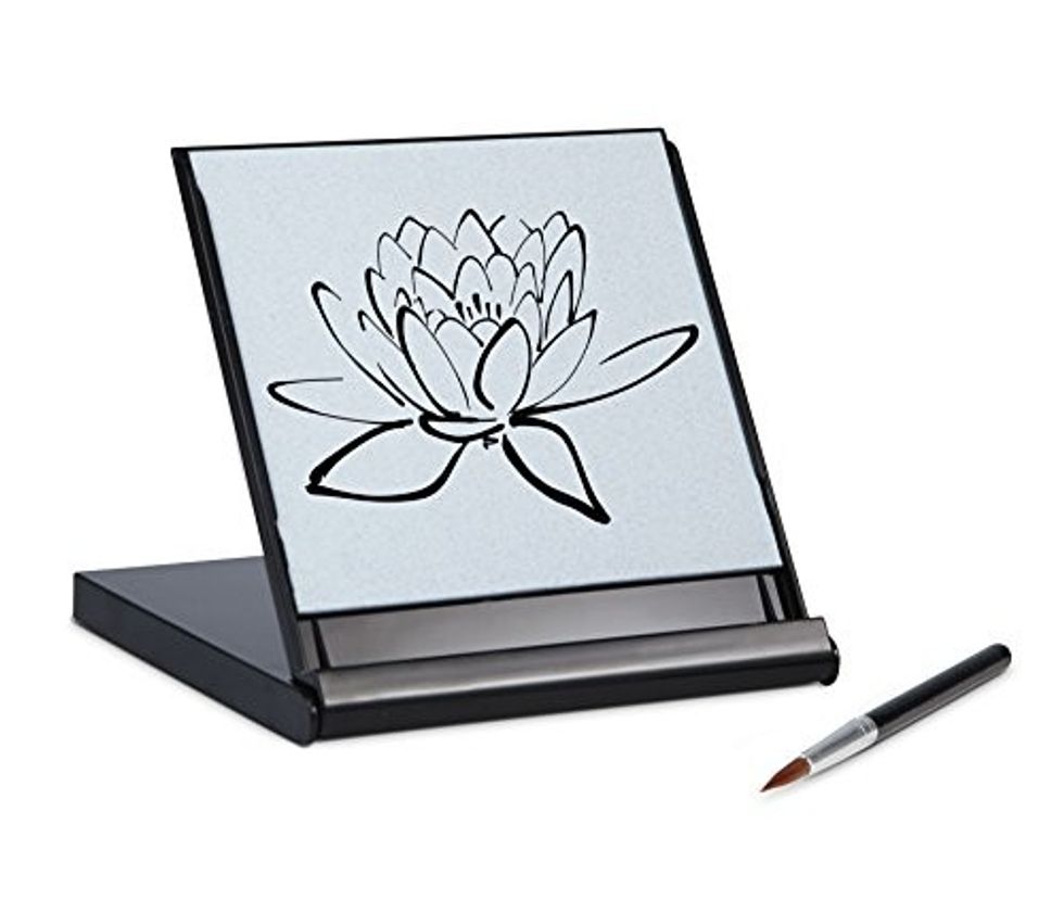 The impermanence of artwork made on a Zen Artist Board Mini is one of the biggest parts of its appeal for mindfulness and meditation. With water alone, this board can be painted on using the included paintbrush, which eventually erases itself to be painted on anew.