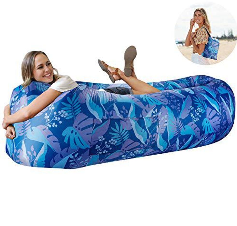 This air lounger is basically a couch that you can set up anywhere! It is super portable and can be taken anywhere - all you do when you want it blown is fly it through the air to capture wind. And then bam! You have a super comfy couch.