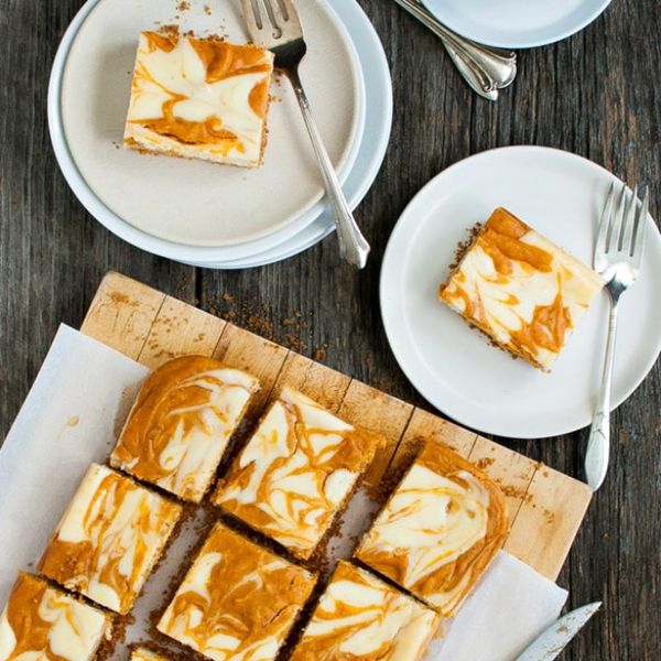 2. Marbled Pumpkin Cheesecake Bars: When you can’t decide between a classic pumpkin pie and an enticing cheesecake, we urge you to do both. This marbled treat is the perfect way to get a little bit of everything. (via Taming of the Spoon)