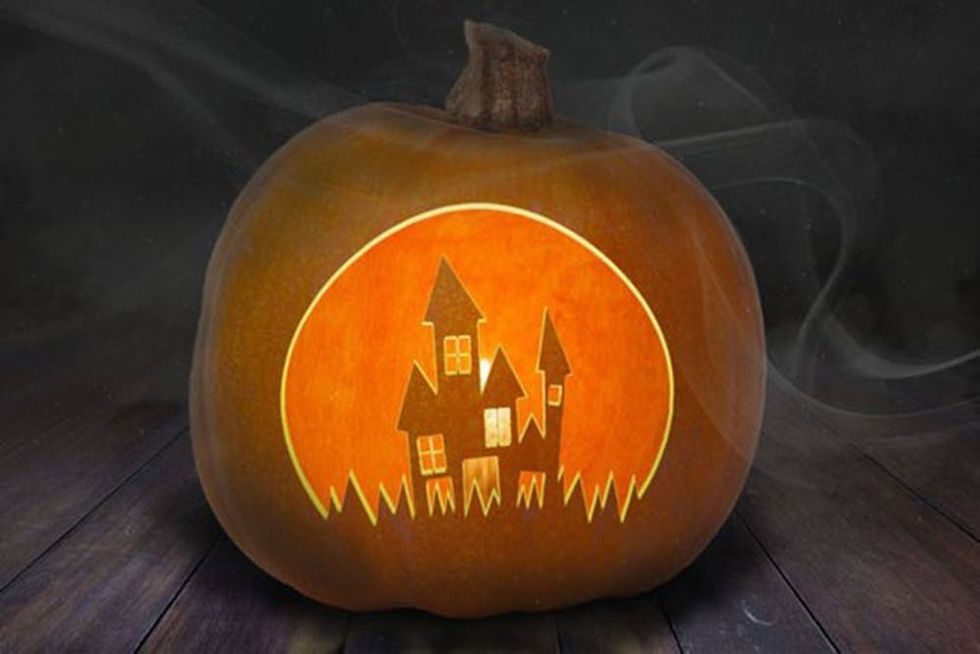 13. Vector Designs Canada Haunted House Pumpkin Carving Stencil ($3): The intricacy of this one would look amazing on a plastic pumpkin. And it won’t rot, so you can actually keep it for next year!