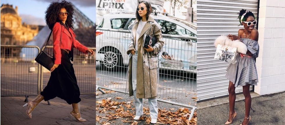 At first glance, transparent plastic seems like one of the least wearable trends to come off the Spring 2018 runways. After all, doesn't the whole concept of getting dressed center around covering up? Well, sort of. Sure, you don't want to look like you went wardrobe shopping at the Ziploc factory, but in actuality, there are plenty of ways to go clear this season and still look chic AF. Yes, designers have actually found a way to make plastic, PVC, and vinyl the latest It fabric. Need proof? Click through to check out 10 fashion finds that are clearly must-haves for spring. (Photos via LeilaDepina, YoyoKulala, SoniqueSaturday)