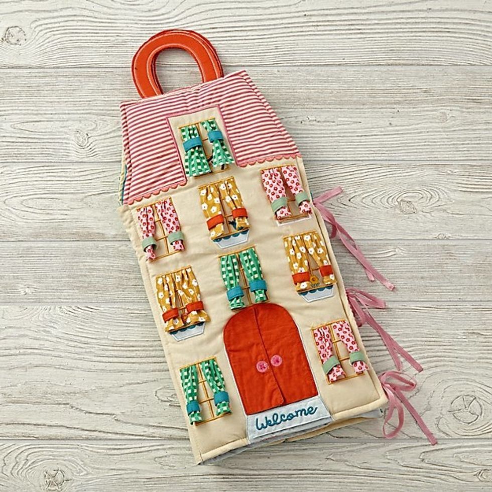 This plush, travel-friendly dollhouse serves up all the imaginative play with a closet full of clothes, a set of dolls, curtains that tie back and even a key under the welcome mat.