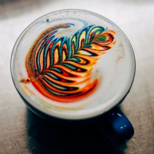 This magical creation was created by Mason Salisbury (@ibrewcoffee on Instagram), a barista at Sambalatte in Las Vegas. From what we've uncovered on his Instagram, Mason first gave this technique a shot last week. He steams milk and then adds in food coloring. Then with a smooth pour, he tops the espresso with the rainbow creation that's just as mesmerizing to watch as it is to drink.