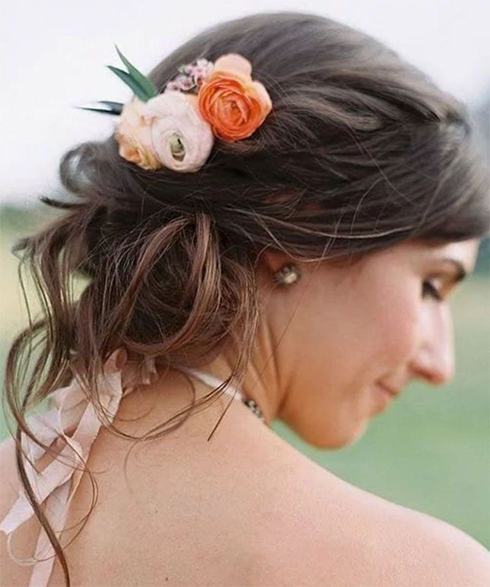 6. Ranunculus Hair Piece: Instead of doing an entire crown, use the petite blooms for a delicate hairpiece. Nestling the buds into a messy-pretty ‘do will basically crown you a boho princess. (via Laura Murray Photography / Mountainside Bride)