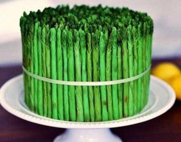 2. Asparagus Cake: We’ve just found our favorite bunch of asparagus. When you cut into it, there’s chocolate cake and thick layers of rich buttercream inside. (via Cheezburger)
