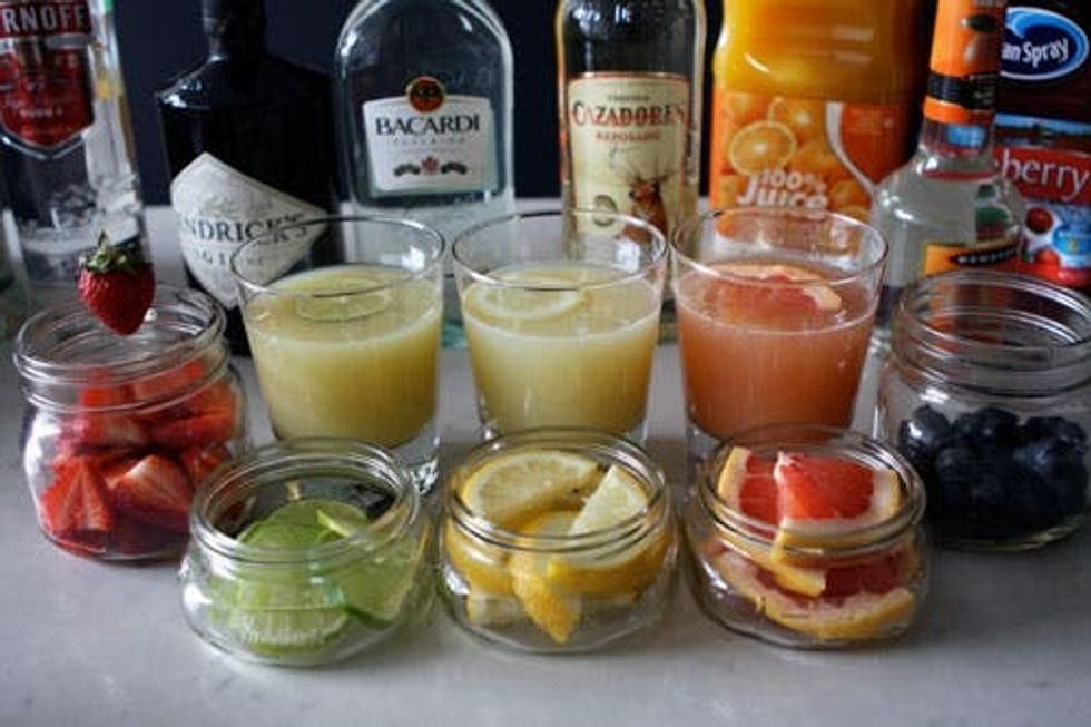 First, gather up all of your ingredients. For liquor, we used Smirnoff Vodka, Smirnoff Citrus Vodka, Hendrick’s Gin, Bacardi White Rum, and Casadores Repisado Tequila.