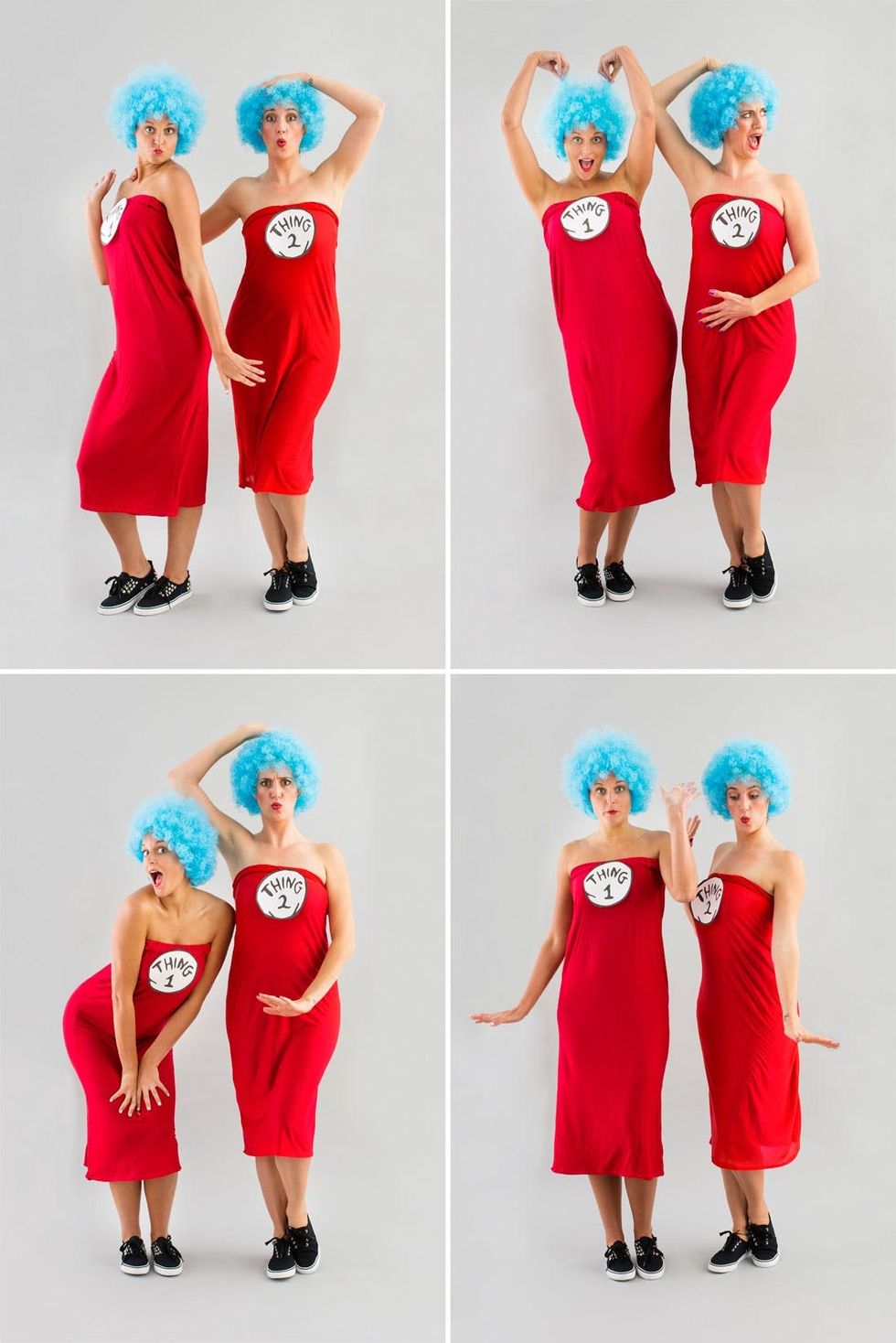 You know what they say about friends who make things together? They totally stay besties for life. For this costume hack, pull those skirts on up and turn them into dresses. Print out Thing 1 and Thing 2 signs and stick ’em right on your chests. Top the look off with a crazy blue wig and you’re good to go.