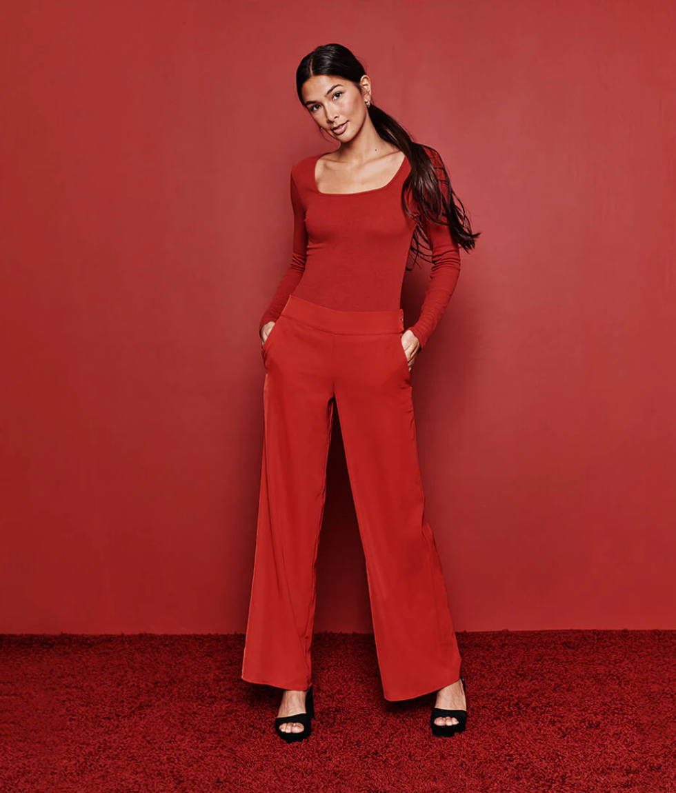 Minimalistic 90s silhouettes are one style we'd like to keep around for the long haul. Channel your inner rom com lead with a simple pop of cherry red.