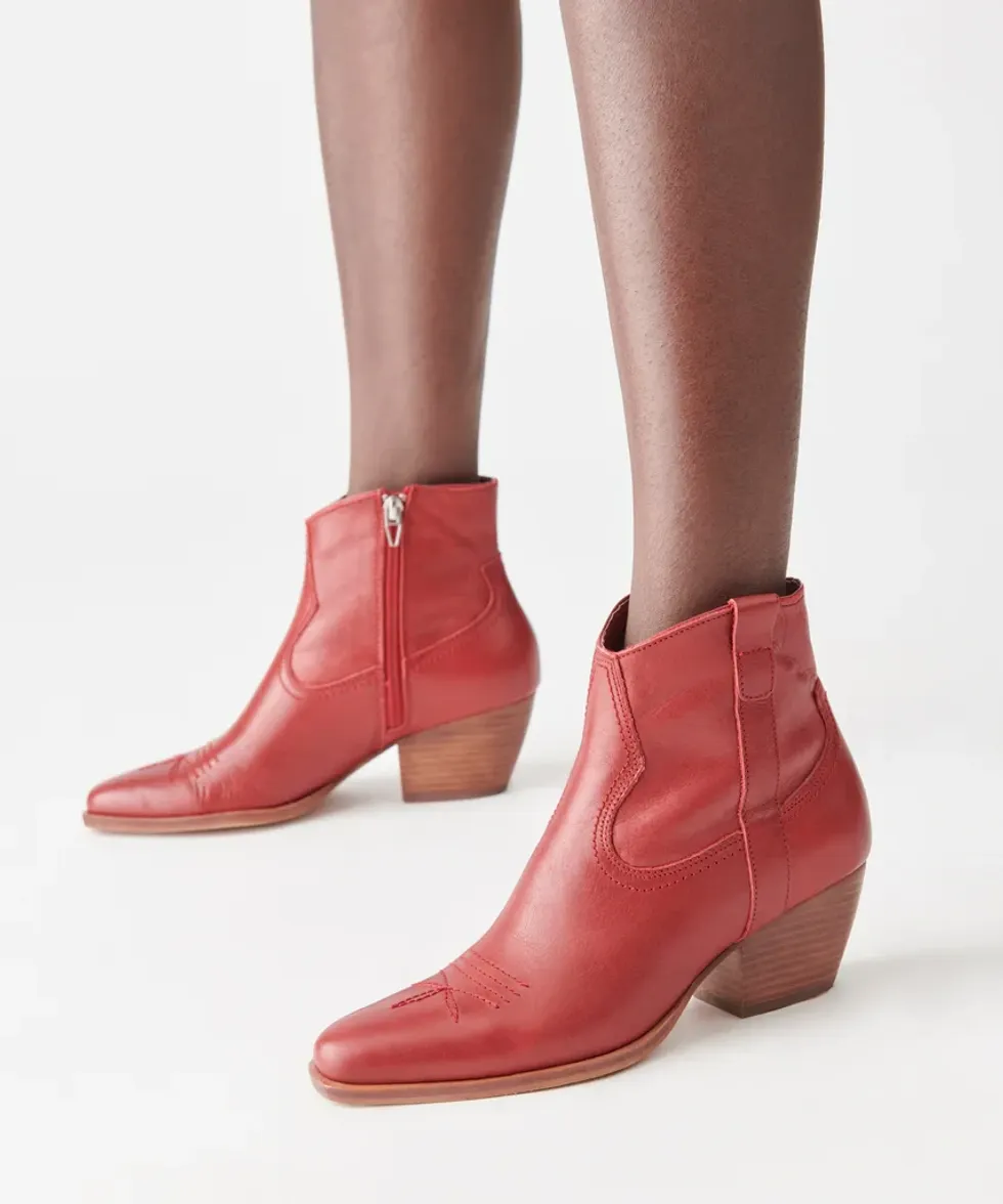 If you're only buying one pair of boots this season, these are it! We love the bold red leather and elevated sculptural heel.